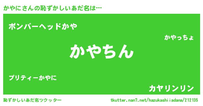 | ヘコむあだ名 | 『かやに(笑)』『かやっぺ』 |