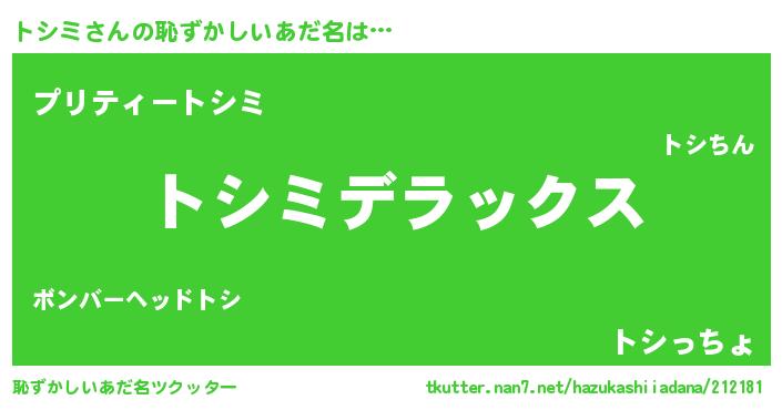 | ヒーロー風カッコイイあだ名 | 『究極戦士トシミ』『スーパートシミ』 |