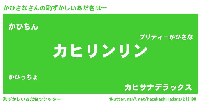 | ヒーロー風カッコイイあだ名 | 『銀牙騎士カヒ』『ネオカヒサナ』 |