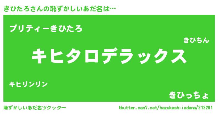 | ヒーロー風カッコイイあだ名 | 『超時空戦士キヒタロ』『仮面キヒダー』 |