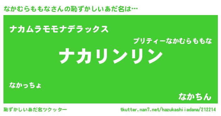 | ヘコむあだ名 | 『なか太郎』『なかむらももな(小並感)』 |