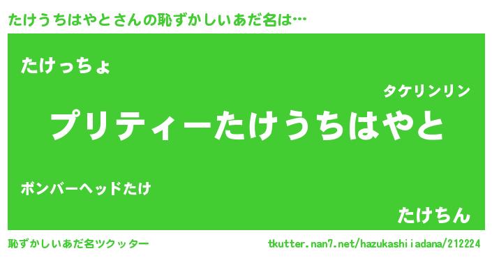 | 胡散臭い通販商品みたいなあだ名 | 『必ず成功するブレスレット…その名も「たけうちはやと」』 |