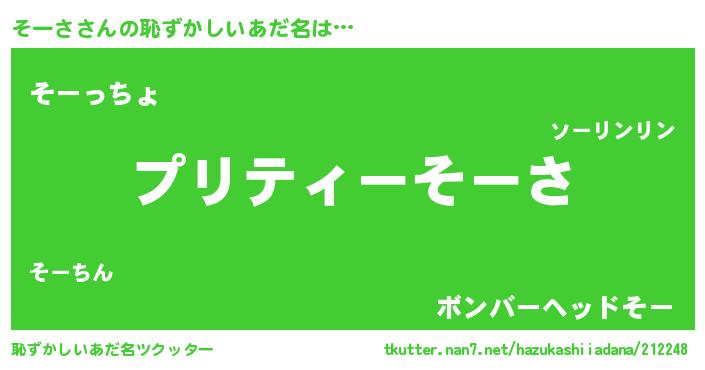 | 胡散臭い通販商品みたいなあだ名 | 『億万長者になれる霊験あらたかなお札…その名も「そーさ」』 |