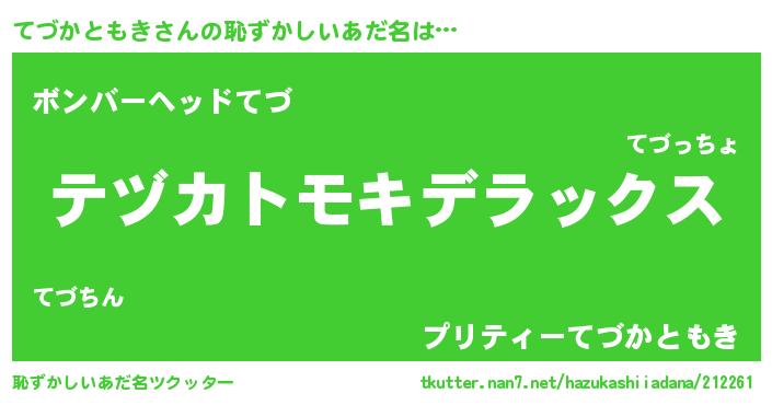 | 男性向けラノベタイトル風あだ名 | 『Re:てづかともきから始める異世界生活』 |