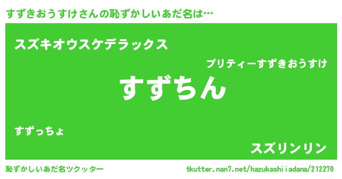 | ヘコむあだ名 | 『すずきおうすけ(小並感)』『すずっちょ』 |