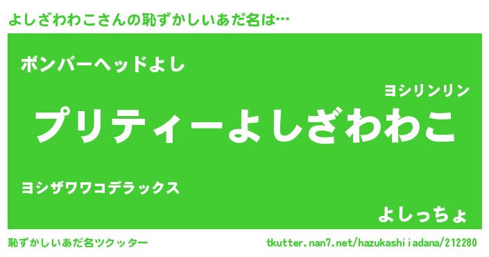 | ヒーロー風カッコイイあだ名 | 『スーパーヨシザワワコ』『仮面ヨシダー』 |