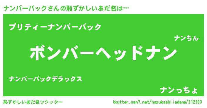 | 女子向けラノベタイトル風あだ名 | 『ナンバーバック恋絵巻』 |