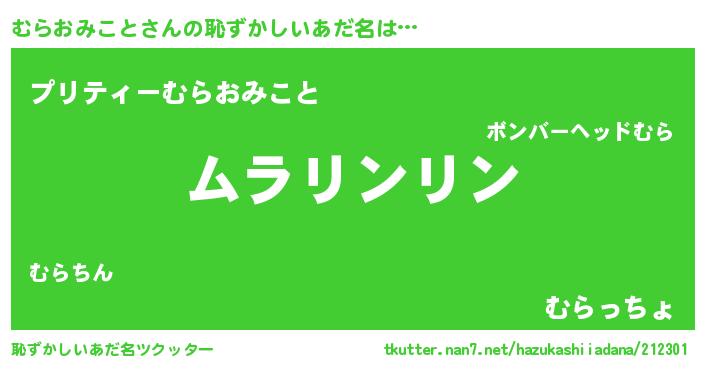 | 意味不明あだ名 | 『とにかく怪しいむらおみこと』 |