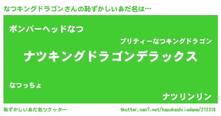 | 意味不明あだ名 | 『自称なつキングドラゴン』 |