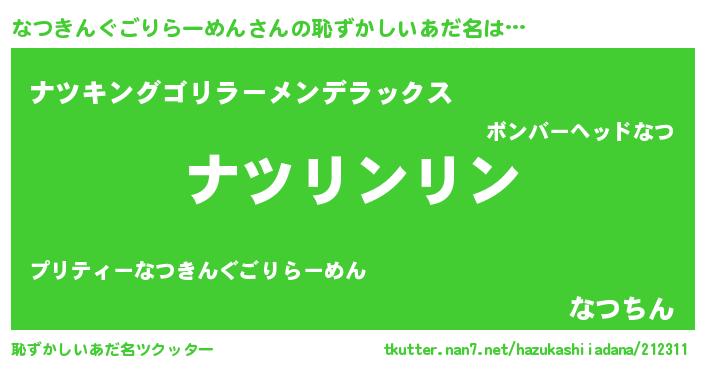 | 意味不明あだ名 | 『とにかく怪しいなつきんぐごりらーめん』 |