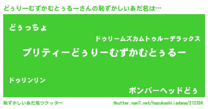 | 男性向けラノベタイトル風あだ名 | 『この素晴らしい世界にどぅりーむずかむとぅるーを!』 |