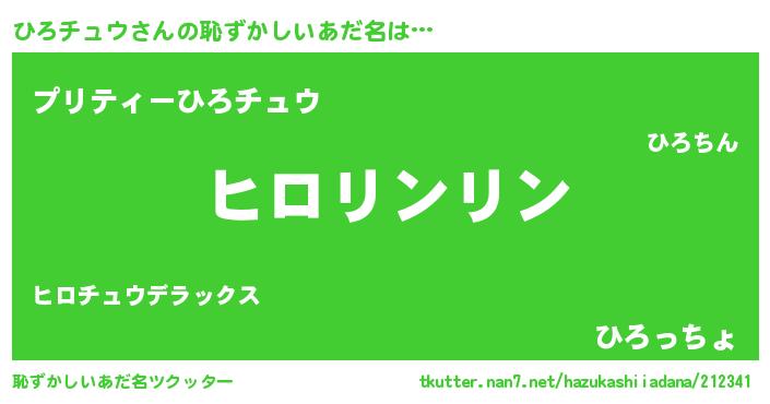 | 男性向けラノベタイトル風あだ名 | 『ひろチュウの嫁は女の子じゃないと思った?』 |