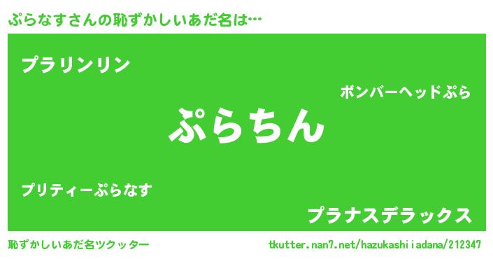 | ヘコむあだ名 | 『ぷらなす(震え声)』『ぷらを』 |
