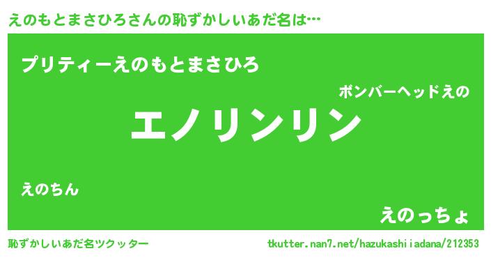 | 意味不明あだ名 | 『とにかく怪しいえのもとまさひろ』 |