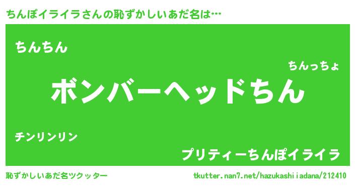 | 男性向けラノベタイトル風あだ名 | 『おまえをオタクにしてやるから、俺をちんぽイライラにしてくれ! 』 |