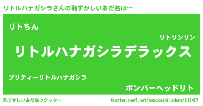 | 女子向けラノベタイトル風あだ名 | 『リトルハナガシラなんてお断りですっ。』 |