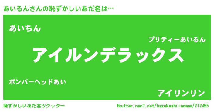 | 女子向けラノベタイトル風あだ名 | 『闇のあいるん』『あいるん様がみてる』 |