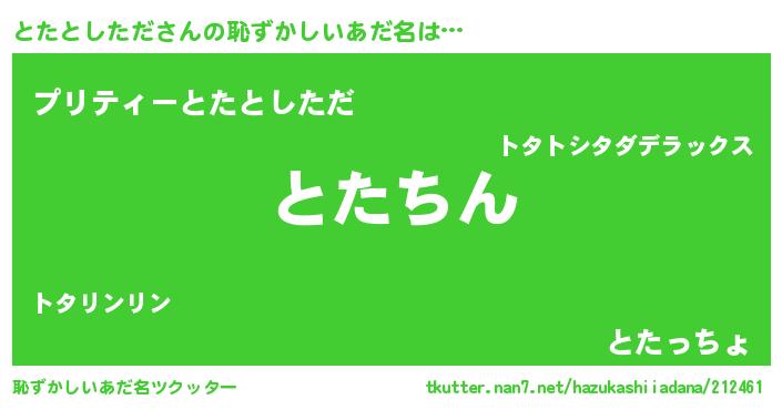 | ヘコむあだ名 | 『とたとしただ(笑)』『とたっふぃ~』 |