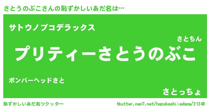 | 男性向けラノベタイトル風あだ名 | 『はたらくさとうのぶこさま!』 |