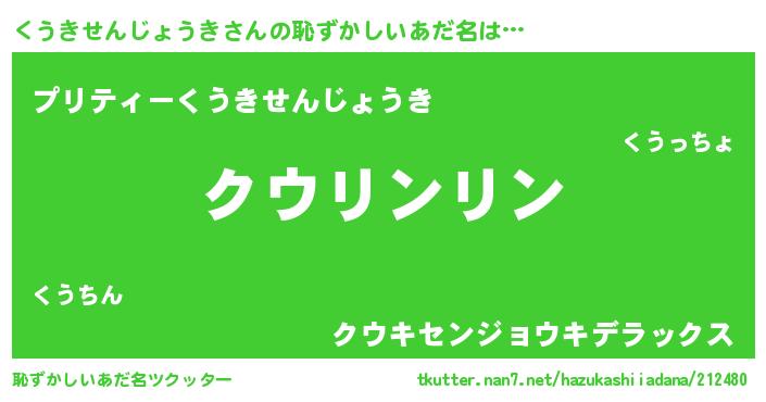 | 男性向けラノベタイトル風あだ名 | 『くうきせんじょうきの嫁は女の子じゃないと思った?』 |