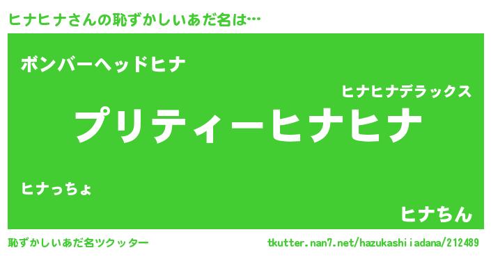 | 意味不明あだ名 | 『住所不定無職ヒナヒナ(2歳)』 |