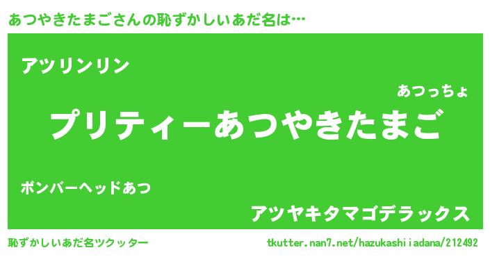 | 欧米人風あだ名 | 『ダレノガレあつやきたまご』 |