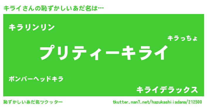 | ヘコむあだ名 | 『キラにー』『キラ太郎』『つくし』 |