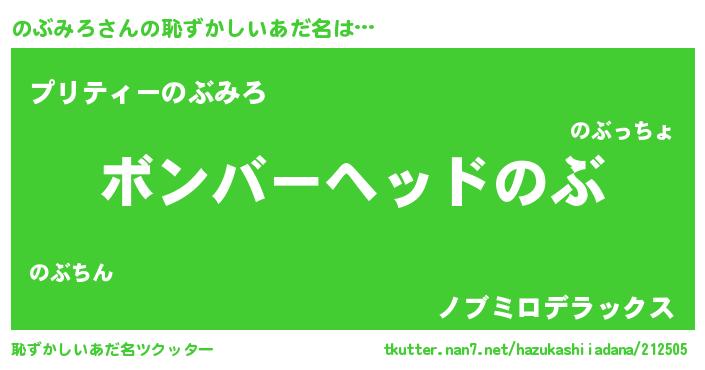 | ヒーロー風カッコイイあだ名 | 『仮面ノブダー』『慈愛の使者のぶみろ』 |
