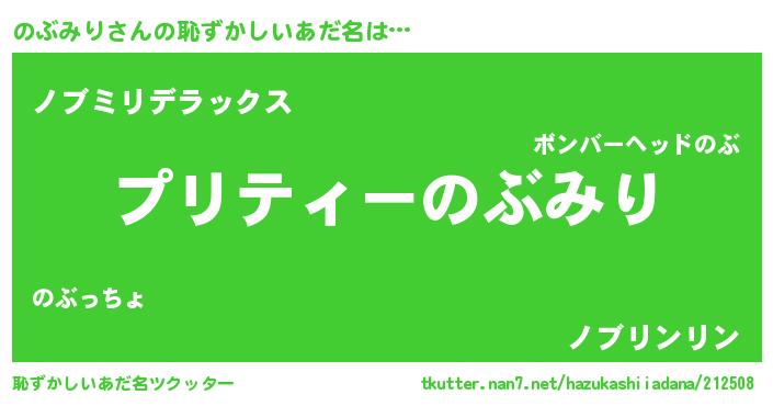 | 男性向けラノベタイトル風あだ名 | 『ノブミリスレイヤー』『のぶみりの憂鬱』 |
