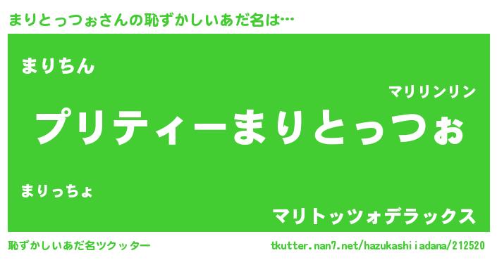 | ヘコむあだ名 | 『まりふぇ~』『まりとっつぉ(小並感)』 |