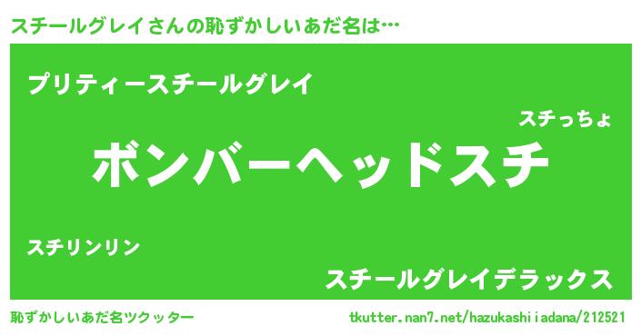 | 意味不明あだ名 | 『住所不定無職スチールグレイ(10歳)』 |
