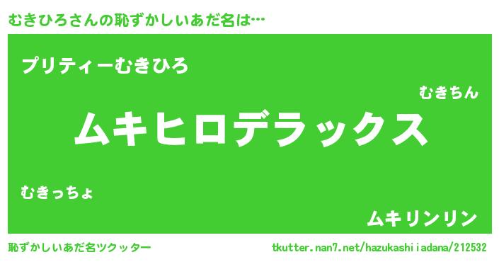| 男性向けラノベタイトル風あだ名 | 『Re:むきひろから始める異世界生活』 |