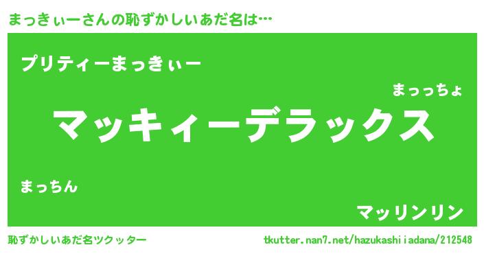 | 女子向けラノベタイトル風あだ名 | 『まっきぃーアンティーク』 |