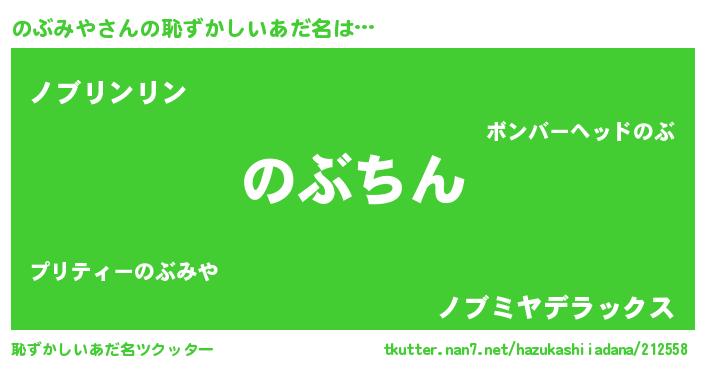 | ヘコむあだ名 | 『のぶみや(爆)』『のぶを』 |