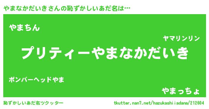 | 可愛いあだ名 | 『やんやん』『やまなかだいきママ』 |