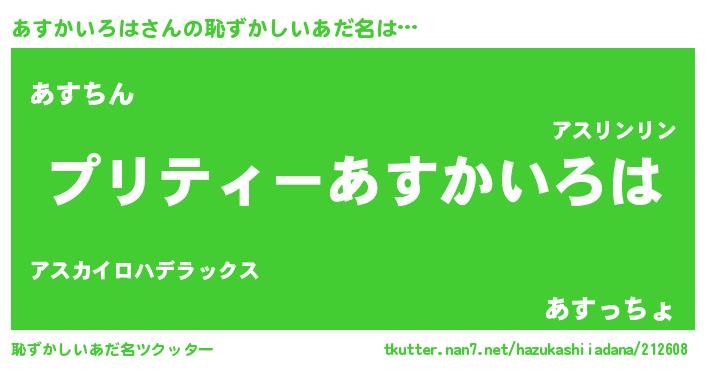 | 男性向けラノベタイトル風あだ名 | 『転生したらあすかいろはだった件』 |