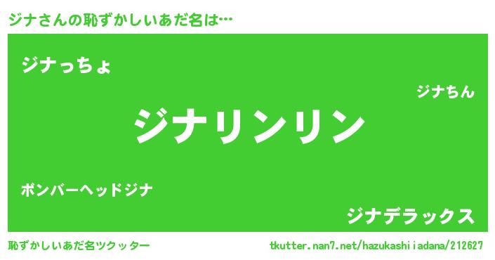 | ヒーロー風カッコイイあだ名 | 『暗黒騎士ジナ』『ウルトラジナマン』 |