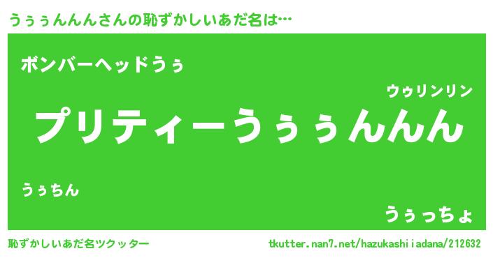 | ヒーロー風カッコイイあだ名 | 『仮面ウゥダー』『スーパーウゥゥンンン』 |
