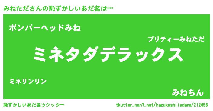 | 意味不明あだ名 | 『自称みねただ』『永久保存みねただ』 |