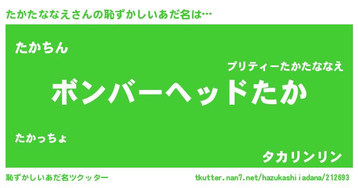 | ヘコむあだ名 | 『たかたななえ(笑)』『たか太郎』 |