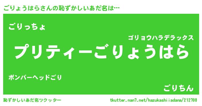 | ヘコむあだ名 | 『ごりにゅー』『豆乳』『ごりを』 |