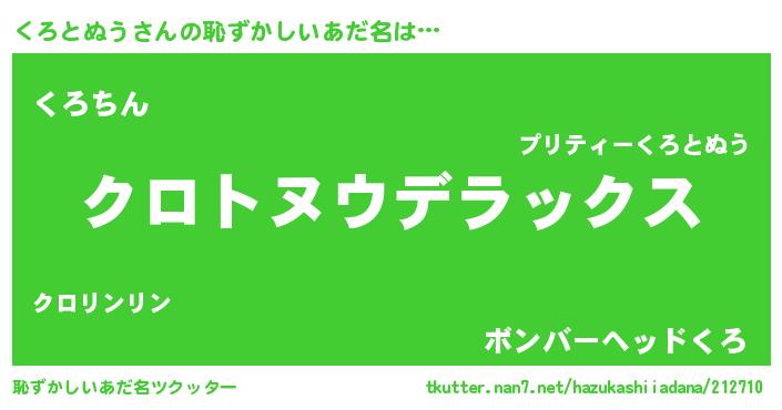 | 欧米人風あだ名 | 『アンジェラ・くろとぬう』 |