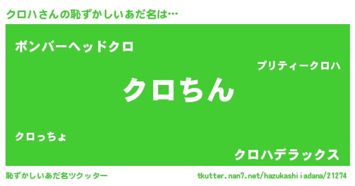 | ヘコむあだ名 | 『クロハ(震え声)』『クロふぇ~』 |