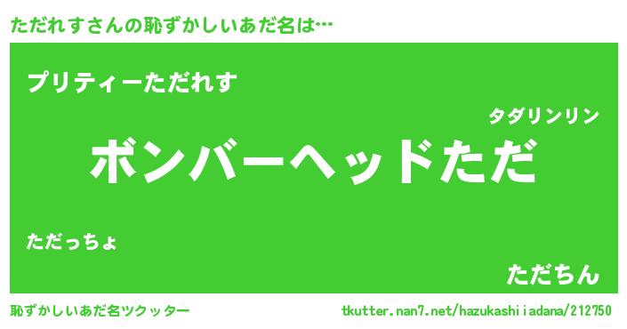 | 意味不明あだ名 | 『住所不定無職ただれす(85歳)』 |