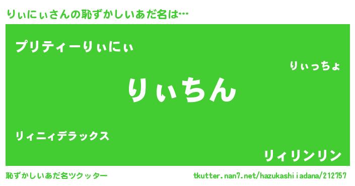 | ヘコむあだ名 | 『りぃにぃ(笑)』『りぃにー』『牛乳』 |