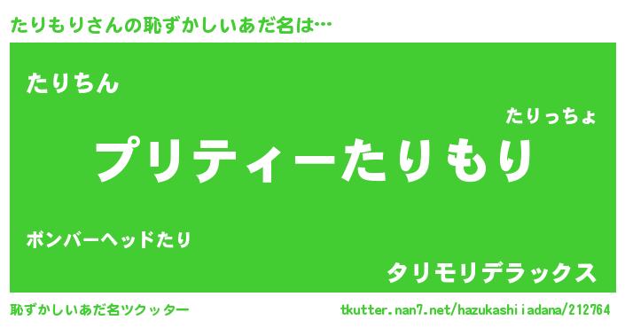 | ヘコむあだ名 | 『たりにー』『たりもり(小並感)』 |