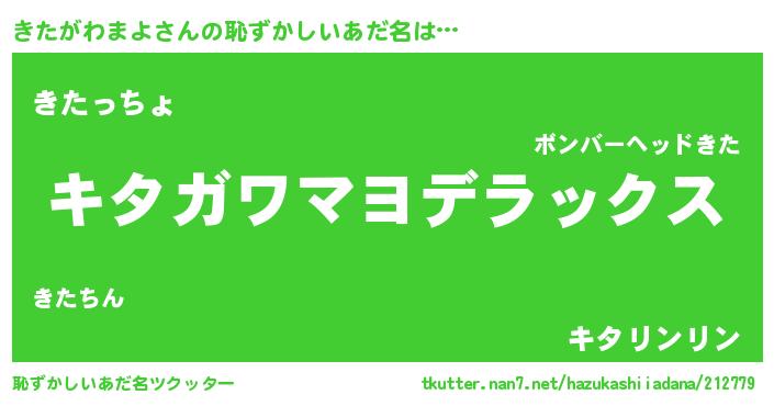 | ヒーロー風カッコイイあだ名 | 『最強戦士キタガワマヨ』『仮面キタダー』 |
