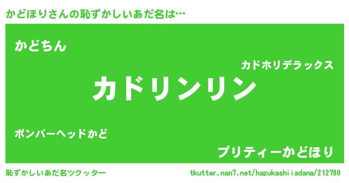 | ヘコむあだ名 | 『かど太郎』『かどほり(笑)』 |