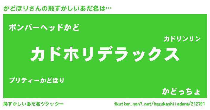 | ヒーロー風カッコイイあだ名 | 『仮面カドダー』『超時空戦士カドホリ』 |
