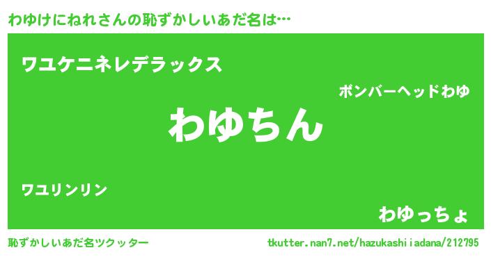 | ヒーロー風カッコイイあだ名 | 『ネオワユケニネレ』『仮面ワユダー』 |